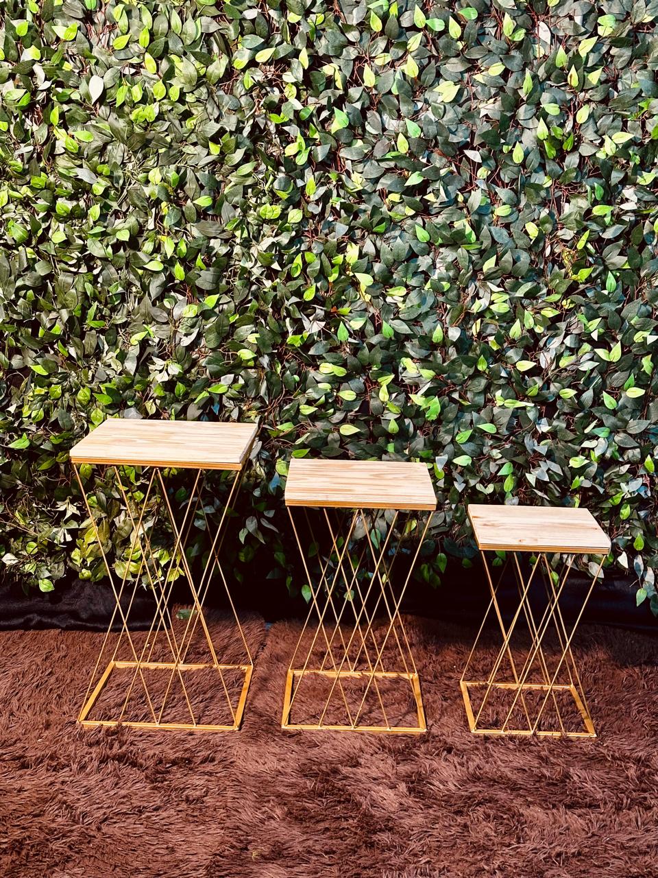 Trio de mesa quadradas douradas