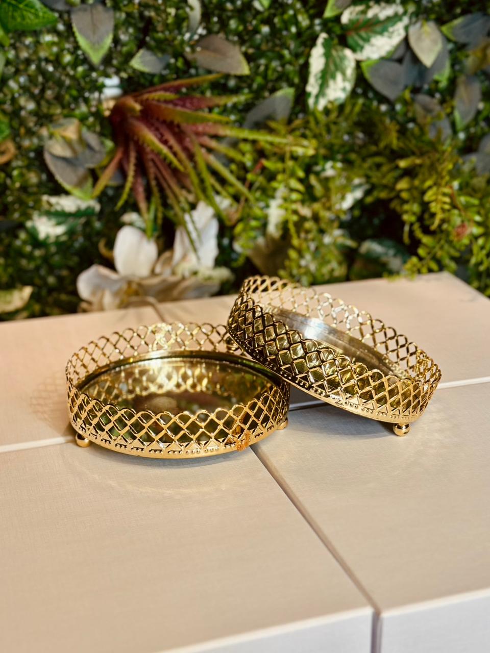 Bandeja doce metal dourada p.