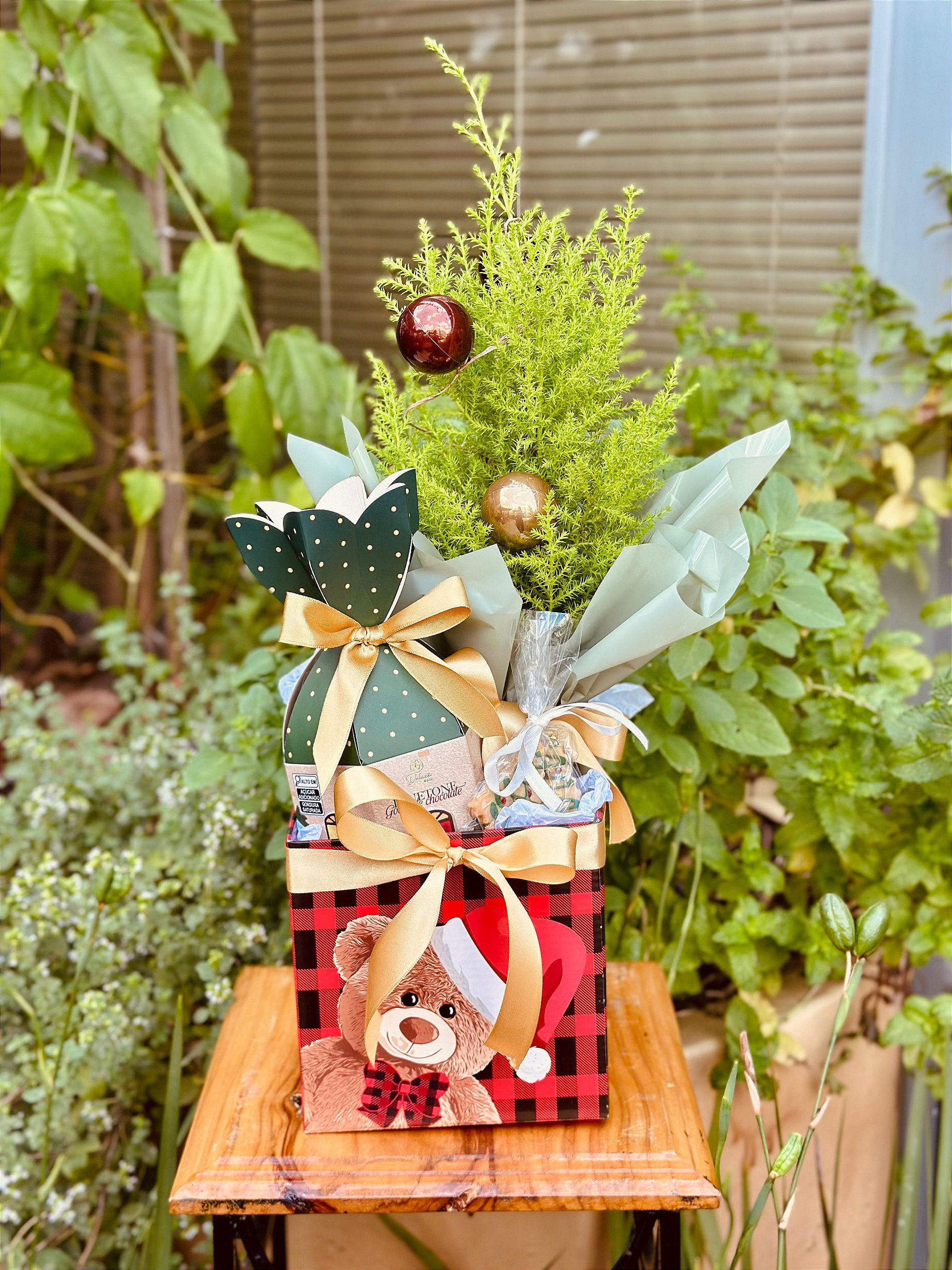 Para levar seu sentimento a uma pessoa especial neste Natal! Este lindo kit com caixa natal, pinheiro natural decorado, panetone e biscoito natal. Surpreenda com este lindo gesto e espalhe bons sentimentos neste dia Das Mães.