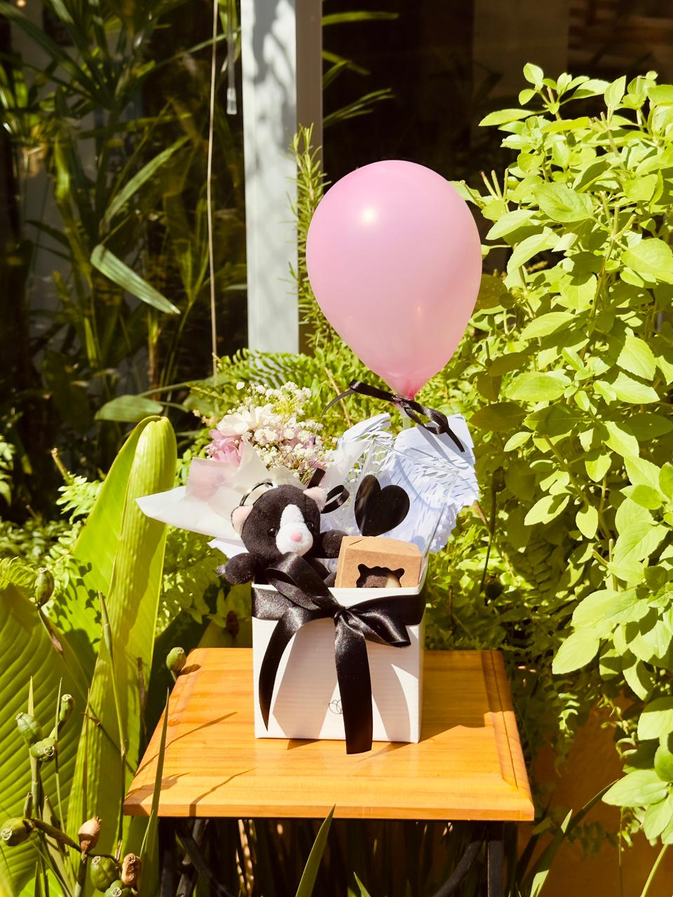Para levar seu sentimento a uma pessoa especial! Este lindo kit com Caixa personalizada pequena, arranjo gypsophilla pequeno, urso mini, caixa com um docinho, xícara vidro grande e balão. Surpreenda com este lindo gesto e espalhe bons sentimentos.
