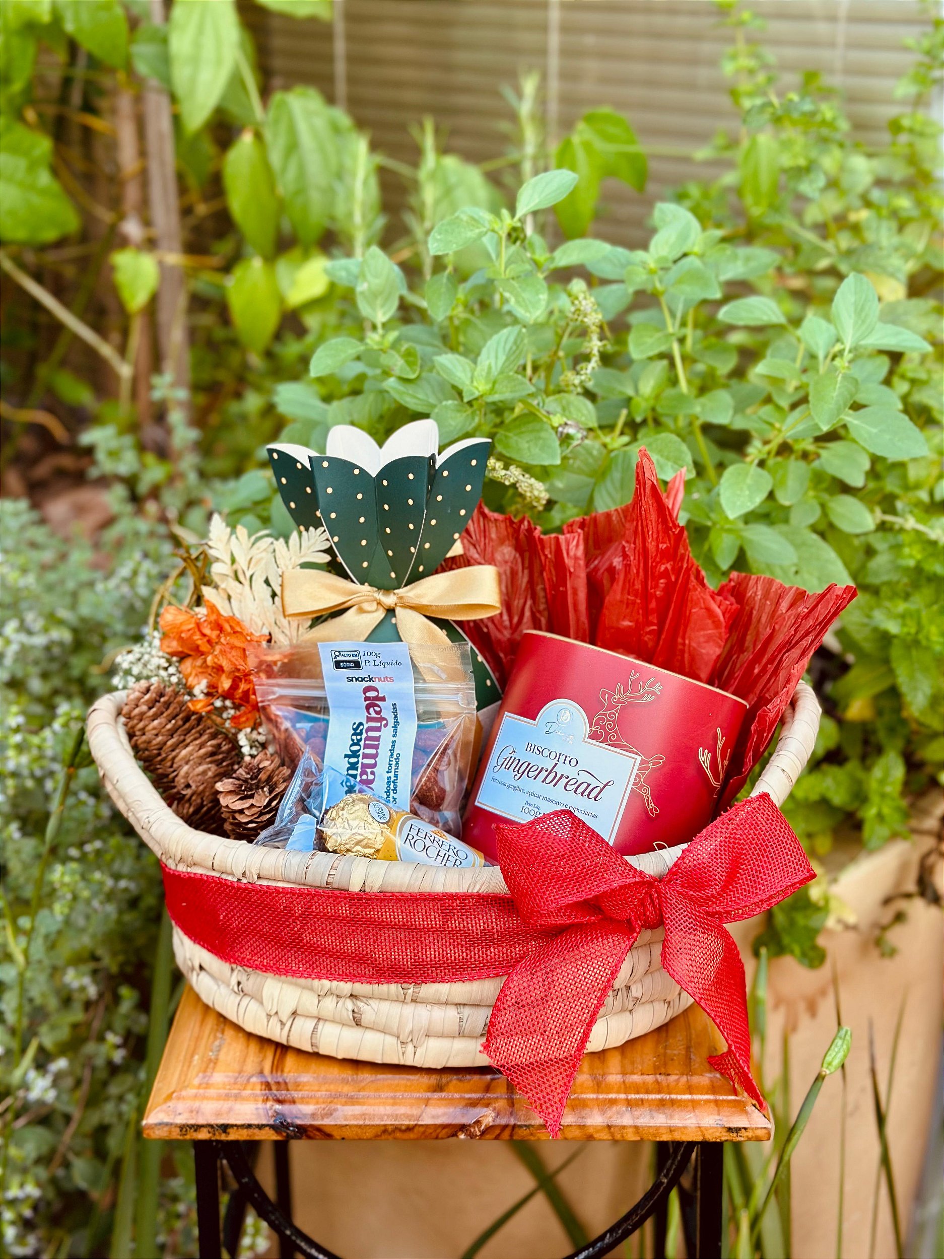 Para levar seu sentimento a uma pessoa especial! Este lindo kit com caixa palha artesanal, panetone, biscoitos gingerbread, amêndoa defumada e ferrero 3 unidades. Surpreenda com este lindo gesto e espalhe bons sentimentos.