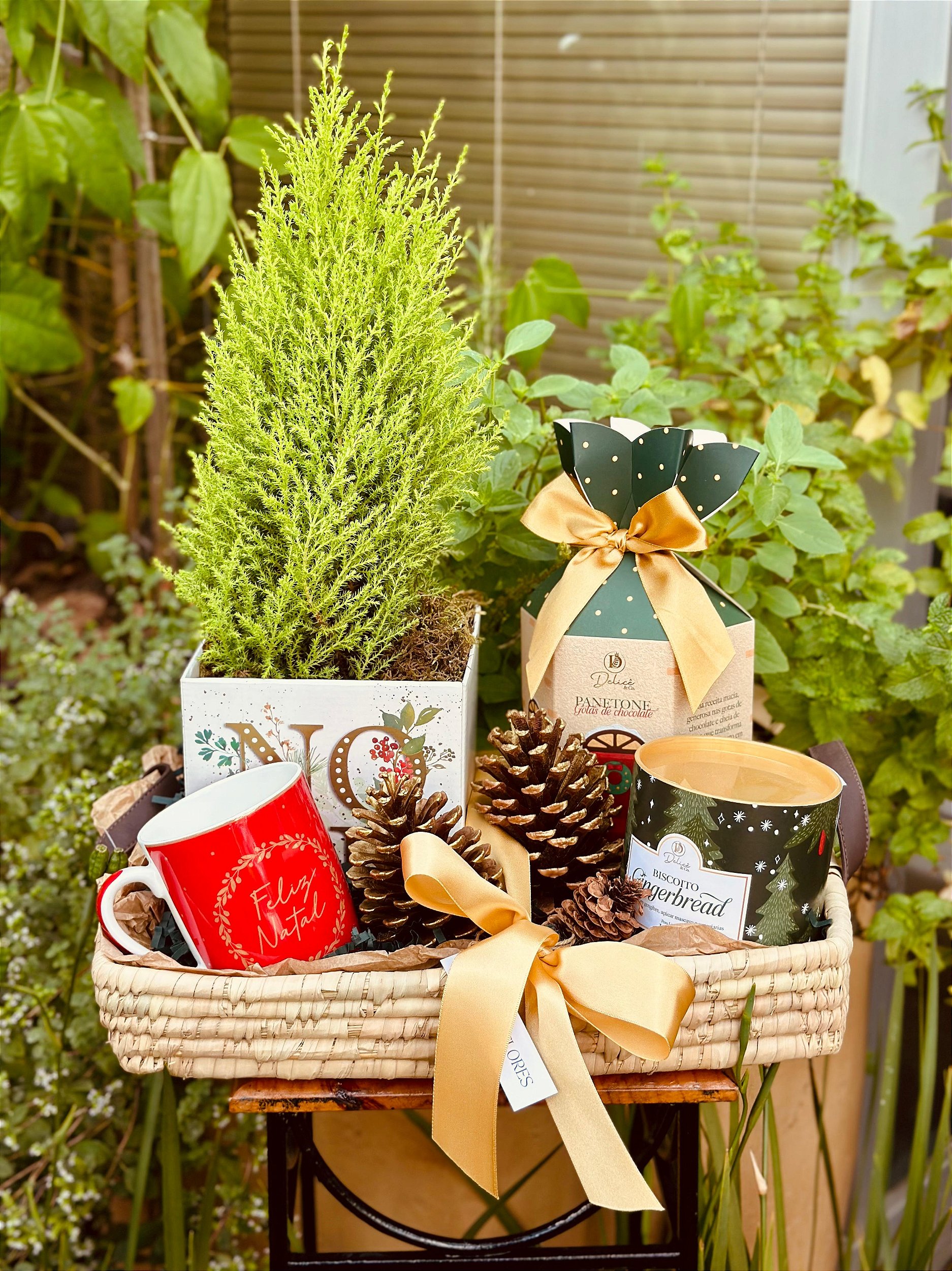 Para levar seu sentimento a uma pessoa especial neste Natal! Este lindo kit com Caixa palha artesanal, pinheiro natural, panettone, biscoito gingerbread e caneca. Surpreenda com este lindo gesto e espalhe bons sentimentos.