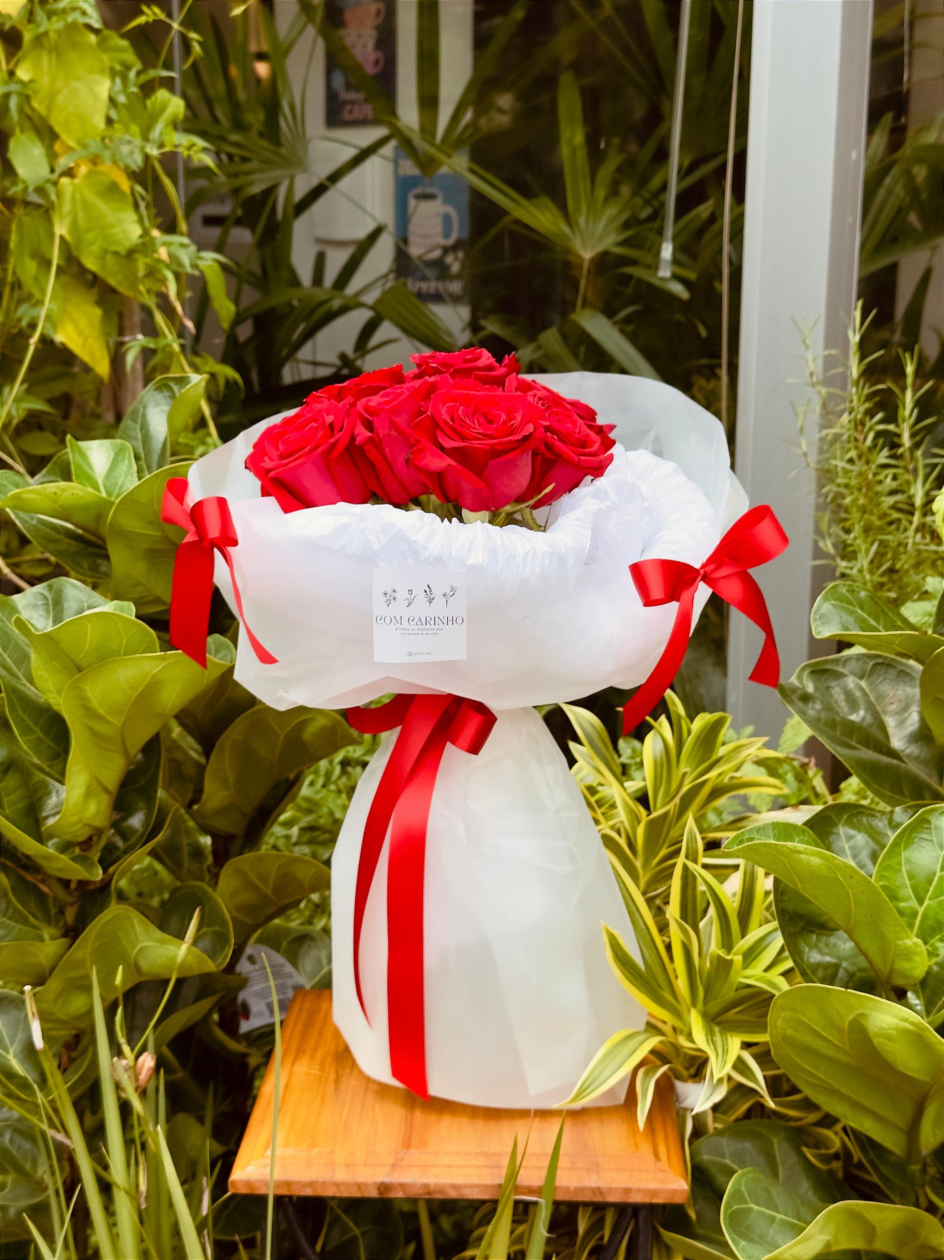 O clássico buquê para os românticos e apaixonados. O mais romântico dos buquês não tem esse nome à toa, são 10 lindas rosas montadas exclusivamente. Este presente será entregue em uma exclusiva embalagem Arte flores com laços especiais.